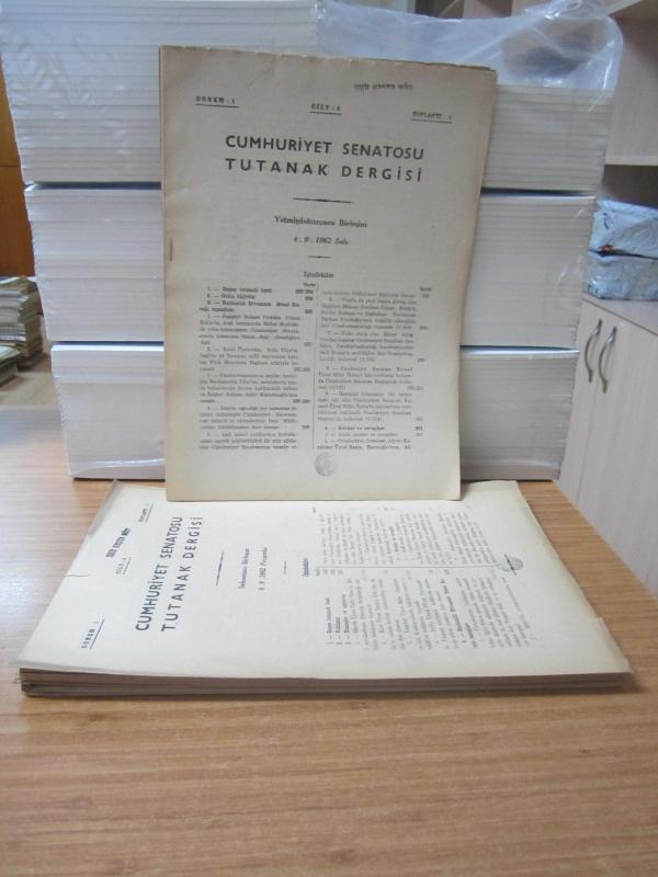 • CUMHURİYET SENATOSU TUTANAK DERGİSİ - 1.DÖNEM 1.TOPLANTI 4.CİLT / 1962 YILI 5 ADET (79-81-83-86-88) BİRLEŞİM TUTANAKLARI VE 4.CİLT FİHRİSTİ